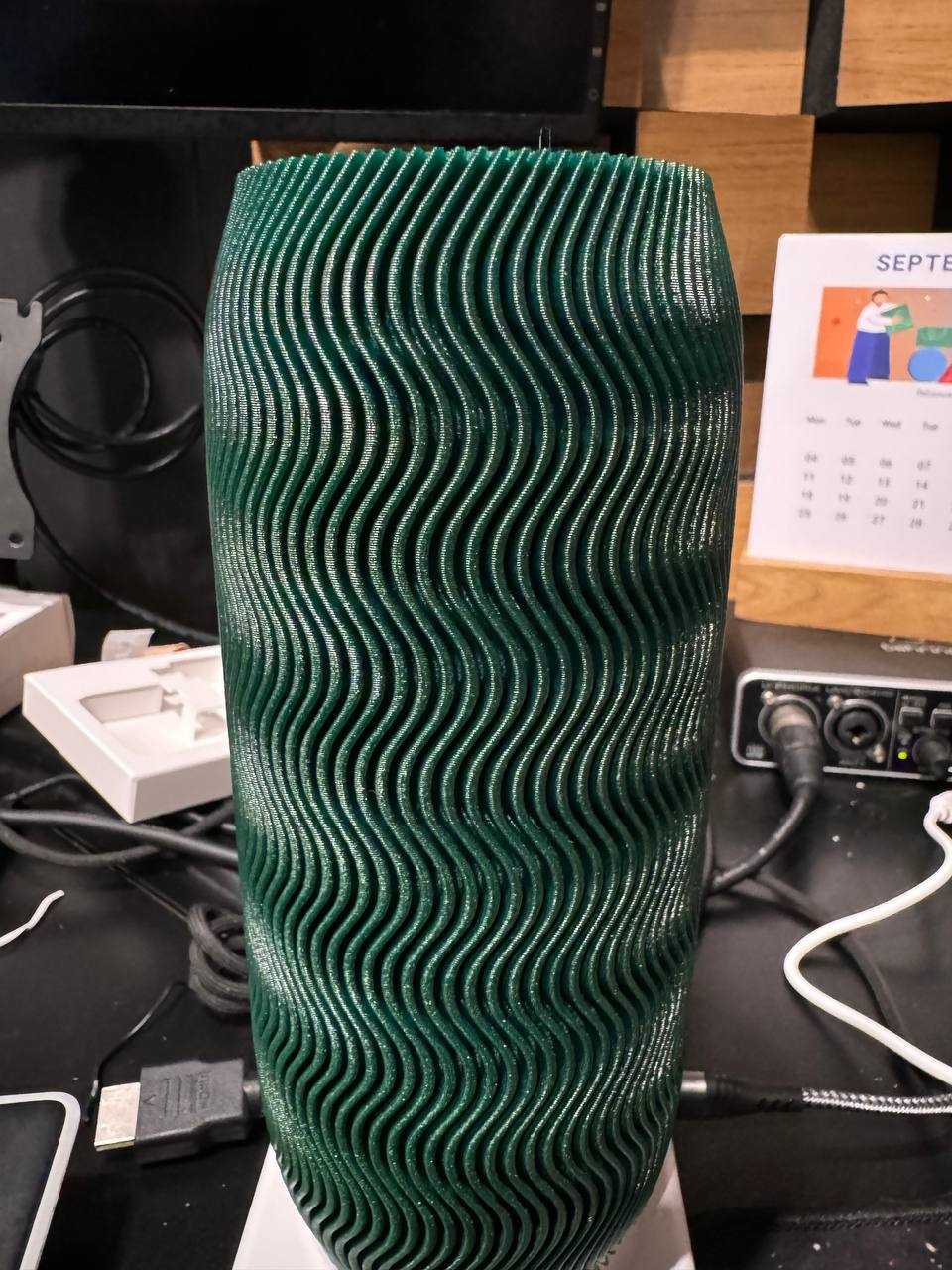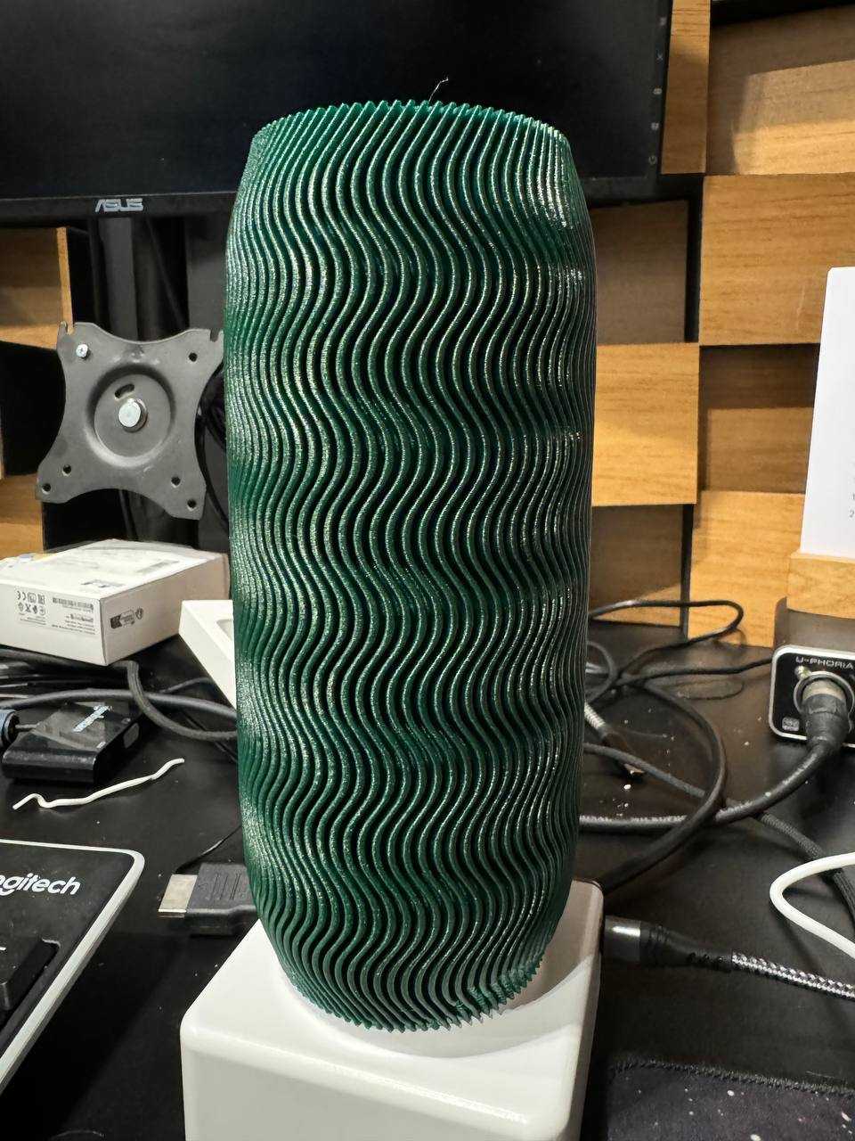 В результаті ми отримали вазу, яка не лише виконує свою функцію, але й є справжнім витвором мистецтва. Green Metallic PETG підносить дизайн на новий рівень, перетворюючи просту вазу на предмет розмови, який привертає увагу і спонукає до ближчого огляду.